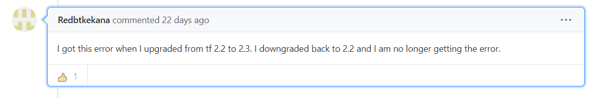 ps. downgrade하고도 안될시에 다시 2.3.0으로 upgrade 해주면 작동 잘 될듯(tensorflow 2.3.0 -> 2.2.0 -> 2.3.0 이렇게)